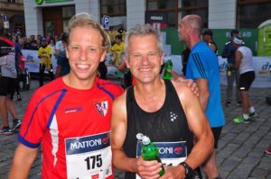 A sobotní večer už byl v olomouckých ulicích vyhrazen půlmaratonskému festivalu. Jako tradičně jsme byli v mnohatisícihlavém davu pořádně vidět a to i hodně vepředu. Vůbec nejrychlejšího času z našich členů (1:13:33) dosáhl Radim Picek, v absolutním pořadí 33. borec v cíli. Také další výkony byly velmi kvalitní: za 1:16:30 běžel Roman Kovář, za 1:18:23 Standa Krajča, do osmdesáti minut se vešel ještě Zdeněk Krejčí (1:19:41). Jen o kousek pomalejší byli Zdeněk Dokulil (1:20:32), Tomáš Krejčí (1:28:46), Zbyněk Jelínek (1:29:05), Aleš Sobek (1:29:15) a Ivo Dospěl (1:29:23). Následovali (bez ohledu na věk a kategorii) Michal Škarabela (1:32:45), Roman Havlík (1:34:05), Martina Otčenášková (1:37:51), Pavel Grégr (1:40:22), Petr Janků (1:40:52), Vladimír Dočkal (1:44:41), Jiří Peřina (1:46:48), Jiří Šrotíř (1:46:58), Jaromír Bronec (1:47:01), Kamila Banátová (1:48:45), Magda Zdráhalová (1:50:21), Judita Nagyová (1:51:12), Petr Stolička (1:53:25), Alena Fritscherová (1:55:54), Ludmila Písková (1:58:03), Tomáš Písek (1:58:06), Edvard Beneš (1:59:55), Markéta Nečesaná (2:01:27), Bohuš Dostál (2:03:46), Pavel Živěla (2:21:33) a Jiří Němeček (2:41:55). Zapomenout nesmíme ani na naši čestnou členku a čtvrtou Češku v cíli Petru Kamínkovou (1:19:25) a za zmínku stojí také účast Toma Krátkého v celkově druhé v pořadí dvoučlenných štafet Běhám na Chomout a devátá příčka dvojice TJ Liga 100 Olomouc ve složení Petr Koupil a Marek Zatloukal.