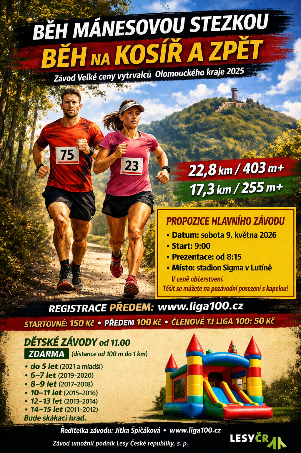 Osobní údaje z tohoto registračního formuláře jsou zpracovávány v souladu s platnými právními předpisy v oblasti ochrany osobních údajů. Vyplněním a odesláním registračního formuláře vyjadřuje účastník závodu svůj souhlas s pravidly a podmínkami závodu, zejména s tím, že se závodu účastní na vlastní nebezpečí a je si vědom, že pořadatel nenese žádnou odpovědnost za případné zranění běžce nebo vznik jiné újmy v souvislosti s účastí v závodu. Účastník dále souhlasí se zpracováním vybraných osobních údajů (jméno a příjmení, e-mail, telefonní číslo, datum narození, bydliště, klub) za účelem zpracování výsledků závodu a vytvoření databáze účastníků, která však nebude poskytnuta třetí osobě k obchodním a marketingovým účelům, a také s pořízením a šířením obrazových a zvukových záznamů ze závodu pro účely propagace činnosti pořadatele a jeho partnerů bez nároku účastníka na jakoukoliv odměnu.